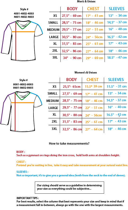 Tailles: Junior : S-M-L / Adulte : XS-S-M-L-XL-XXL